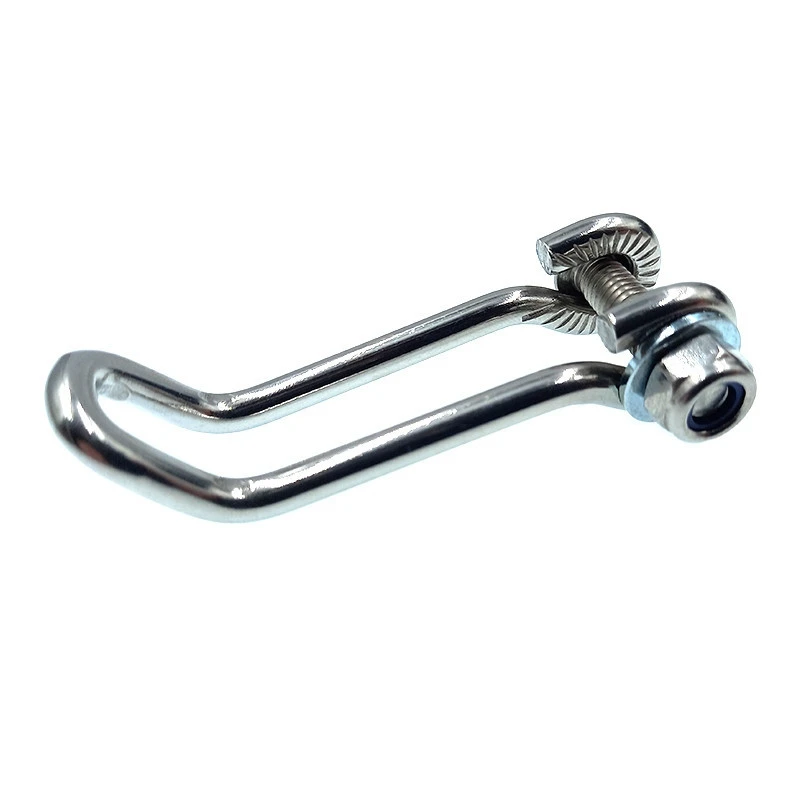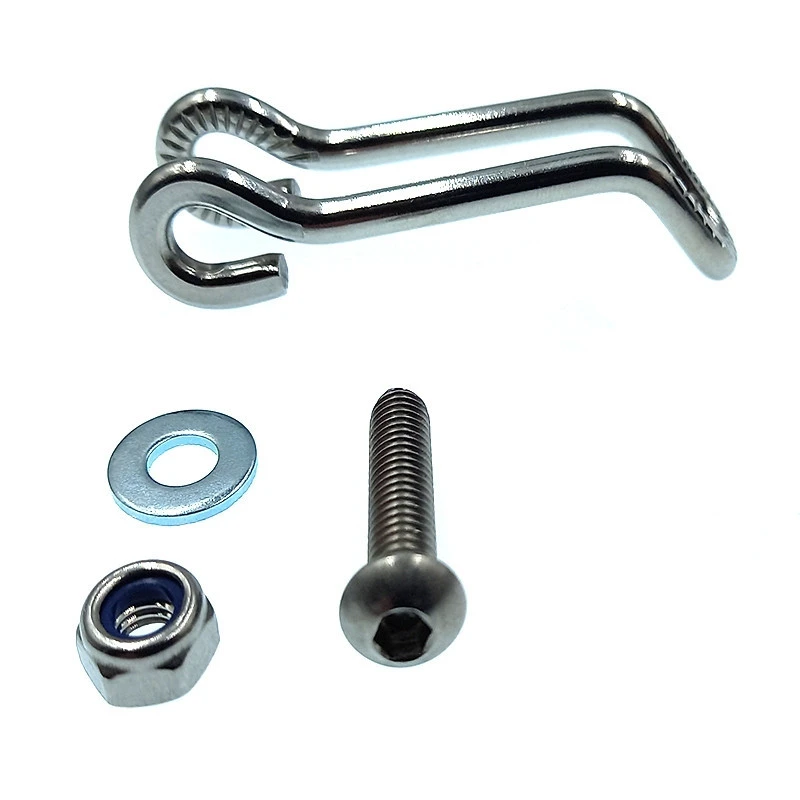 Cette fixation en acier inoxydable permet d’installer un feu avant sur la fourche du vélo. cette patte robuste est fournie avec une vis inoxydable, un écrou frein, et deux rondelles inoxydables pour le montage du phare sur le support.