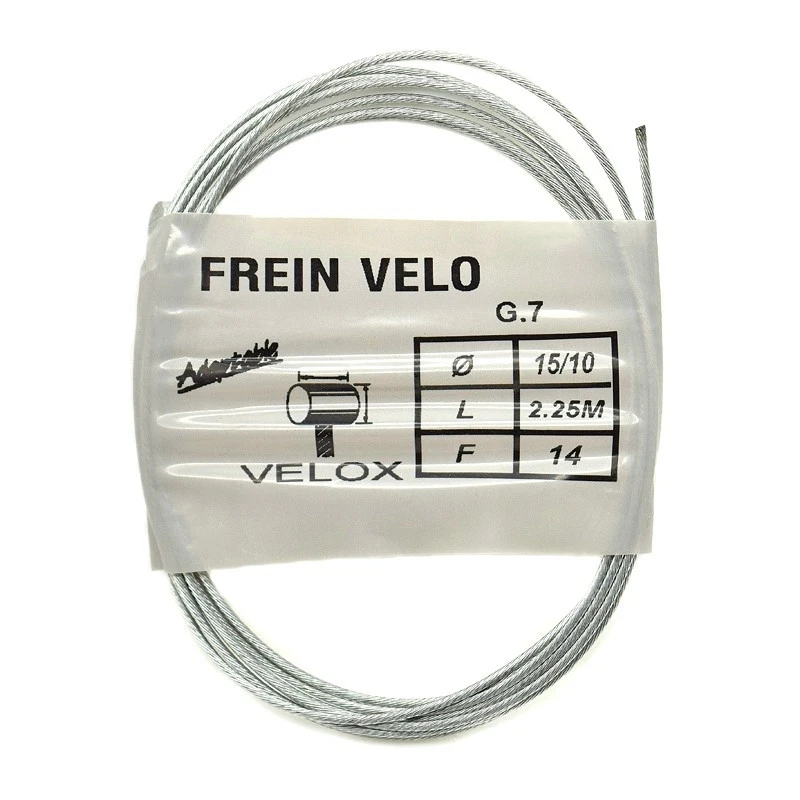 Câble en inox de marque Velox, idĂ©al pour le changement d’un câble de frein lorsque celui-ci est abĂ®mĂ© ou effilochĂ©.